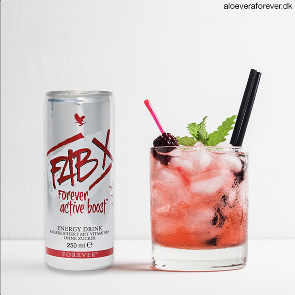 Blend brombærrene til en fin puré. Tilsæt FAB X, Forever Bee Honey og citronsaft, og rør godt rundt. Si blandingen for at fjerne kernerne (valgfrit). Hæld blandingen i et glas og tilsæt mineralvand, og rør forsigtigt. Tilføj is og pynt med mynteblade og brombær.