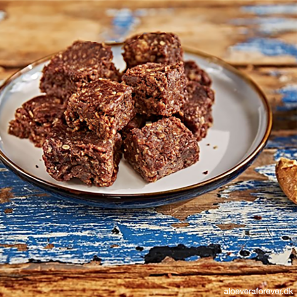 Bland peanutbutter, Forever™ Bee Honey, Forever Ultra™ Vanilla og salt. Tilsæt så en smule rom ekstrakt eller essens og derefter havregryn. Smag evt. til med lidt mere rom ekstrakt/essens.